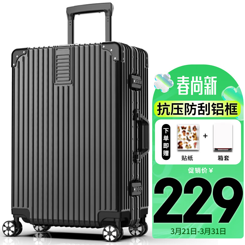 SOO行李箱男铝框商务拉杆箱旅行箱密码箱女皮箱子手拉箱 24英寸黑色价格:249.00元!