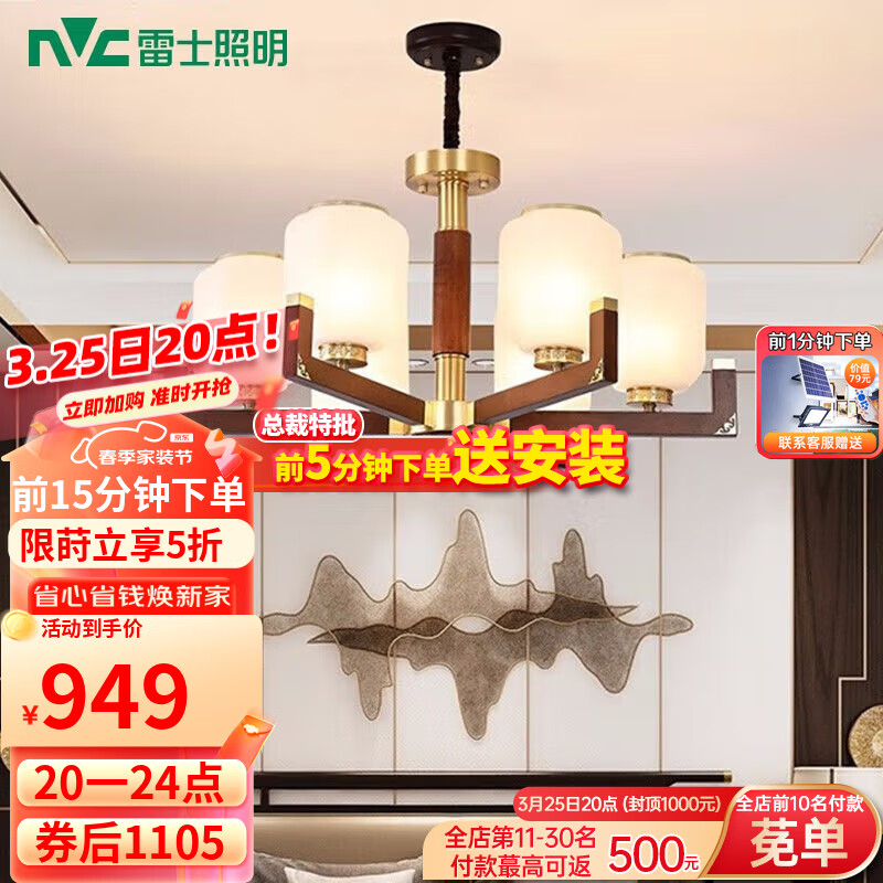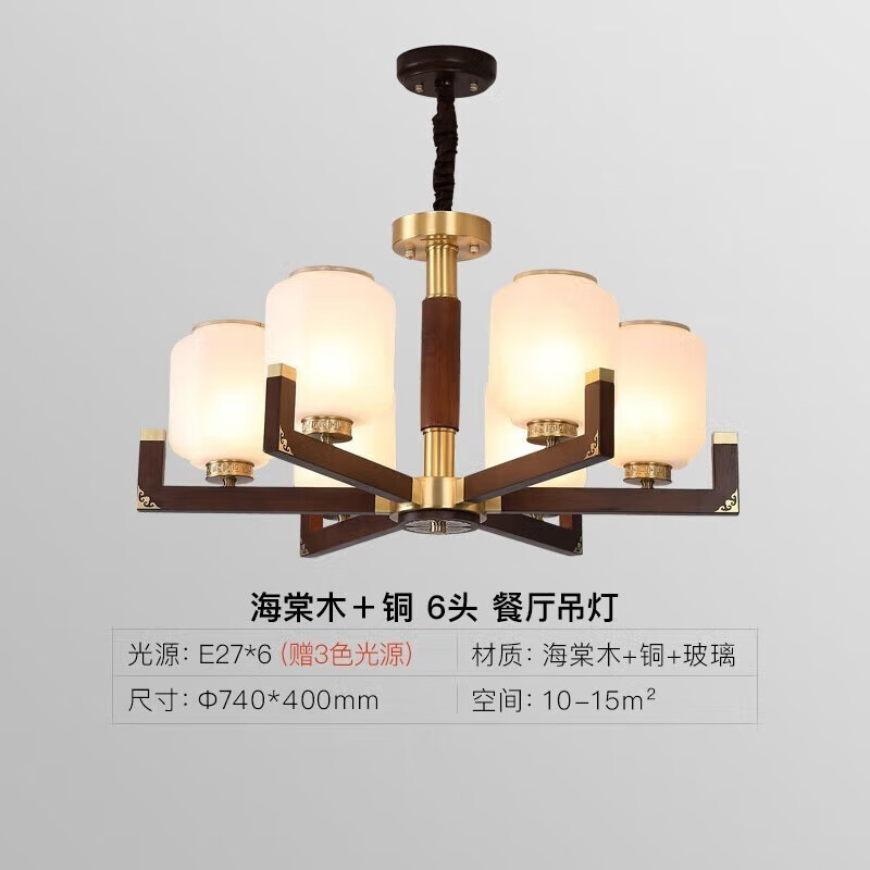 雷士(NVC)新中式吊灯海棠木国标黄铜客厅灯餐厅灯卧室灯灯饰NDBD06A-003价格:1855.00元!