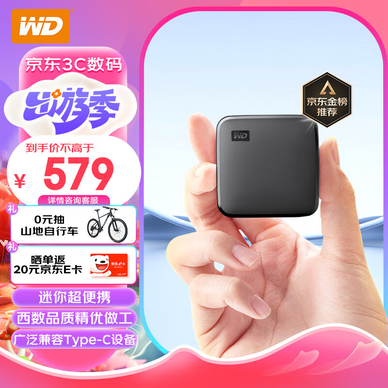 西部数据(WD) 1TB 移动固态硬盘(PSSD)Elements SE新元素 SSD type-c接口 手机笔记本外置外接价格:579.00元!