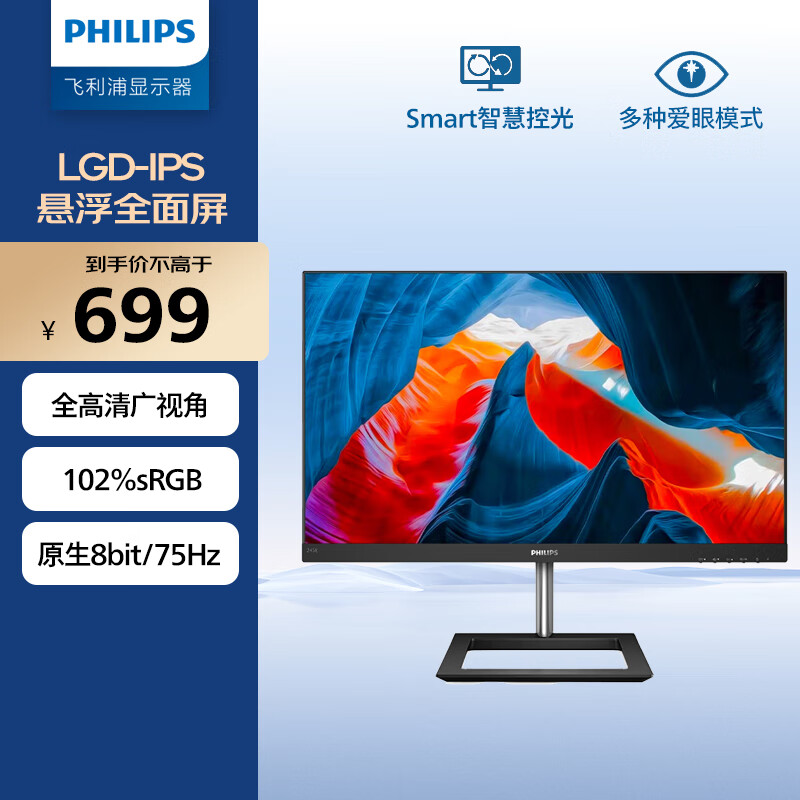 飞利浦 23.8英寸 屏LGD-IPS 75Hz 可壁挂 家用娱乐 游戏模式 办公显示器 拼接显示屏 241E1价格:699.00元!