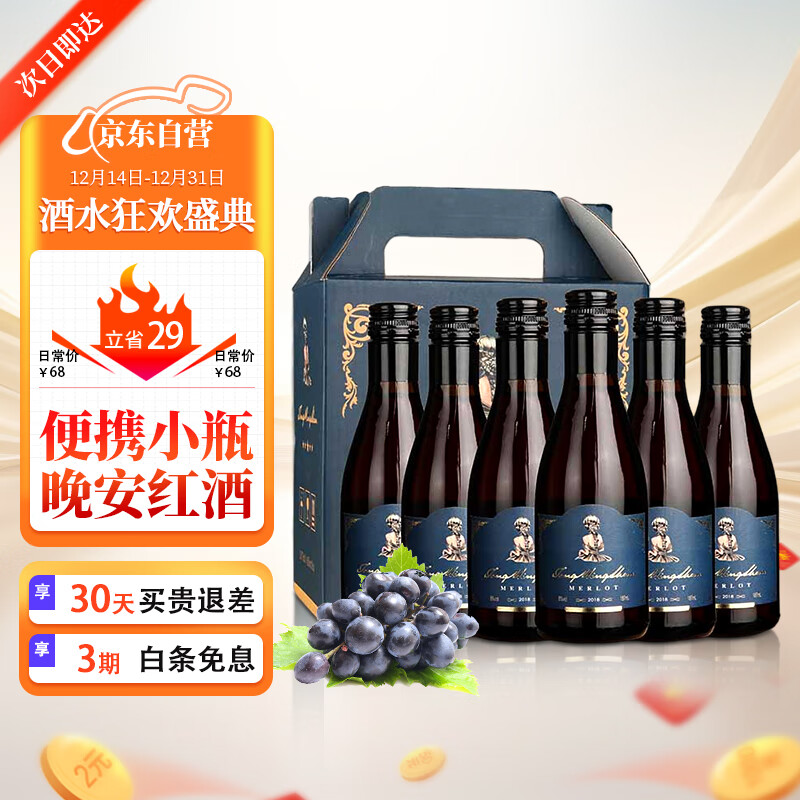 通明山国产美乐甜红葡萄酒8度小瓶装红酒低度微醺甜酒果酒礼盒187ml*6瓶价格:68.00元!