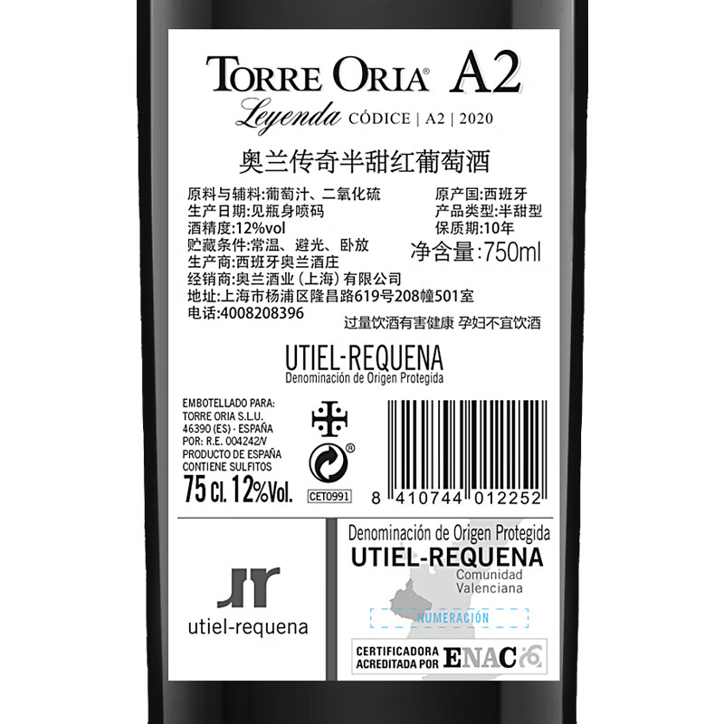 奥兰传奇半甜红葡萄酒750ml(A2)单瓶价格:69.00元!