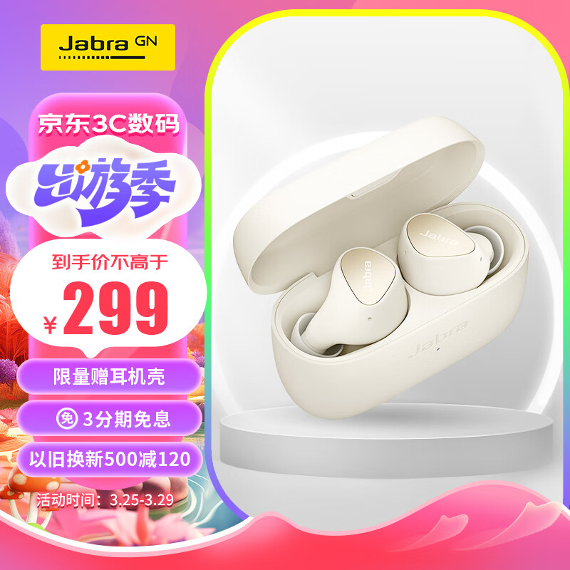 捷波朗(Jabra)Elite3 真无线蓝牙降噪耳机 蓝牙5.2 强劲续航(65t升级版E3) 安卓苹果音乐耳机 月牙白色价格:319.00元!