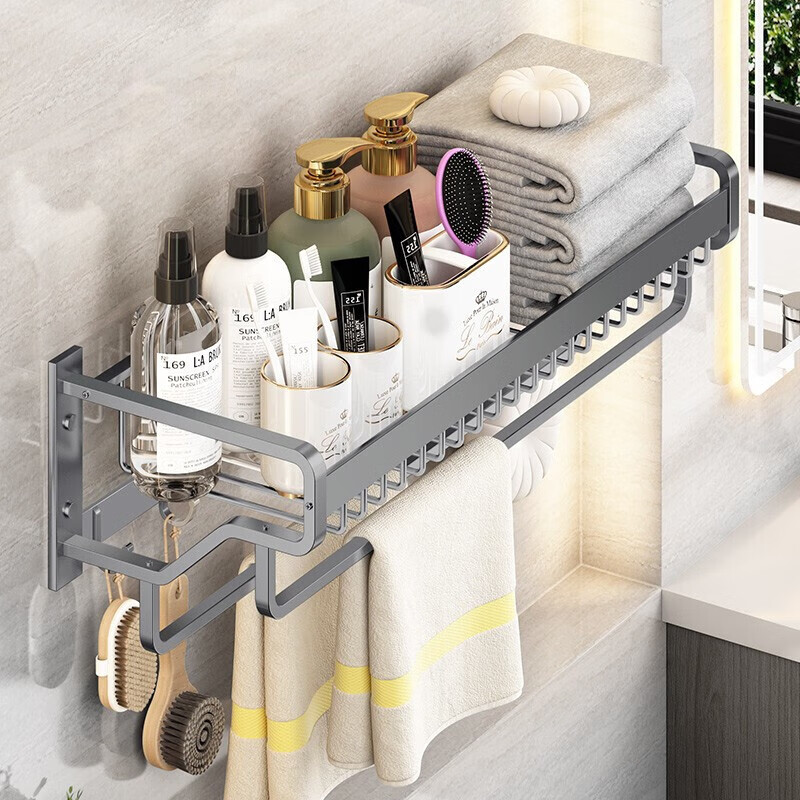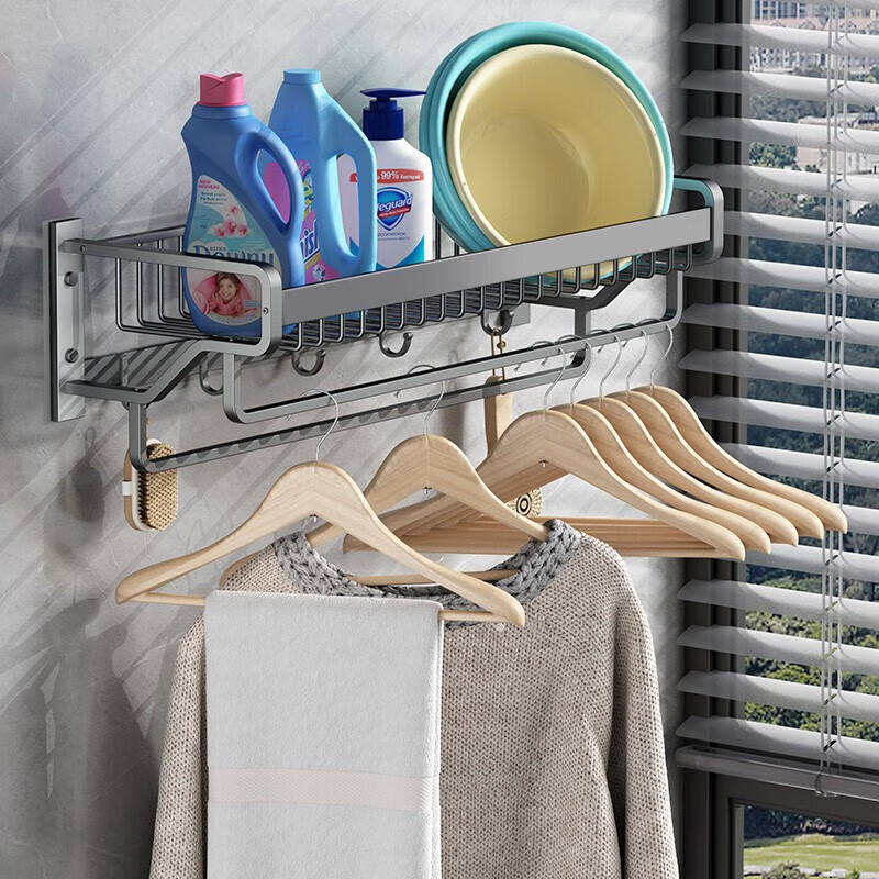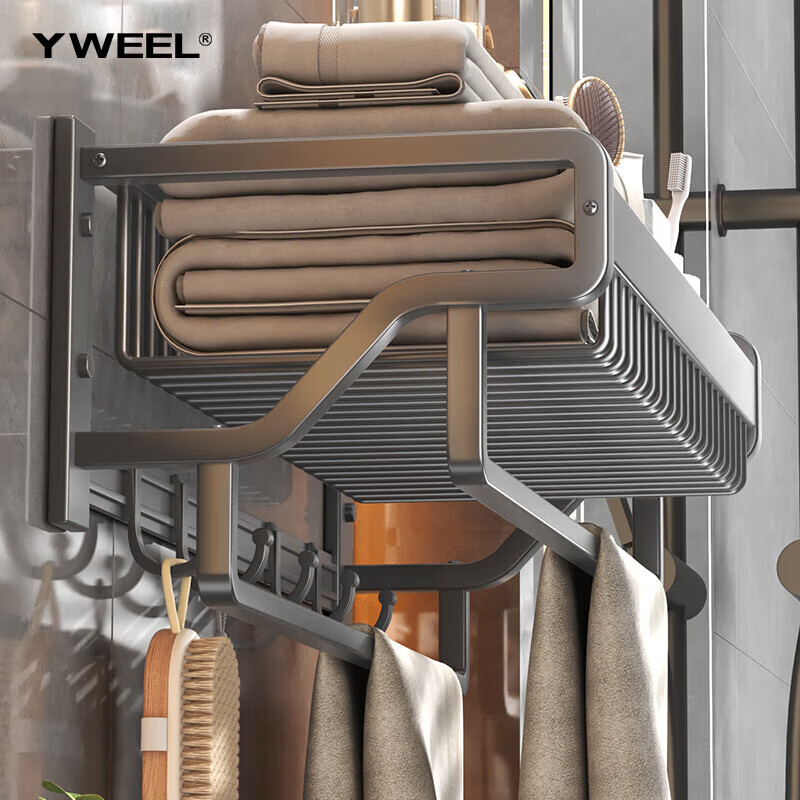 一卫卫生间毛巾架免打孔浴室厕所置物架太空铝黑色浴巾架价格:79.00元!