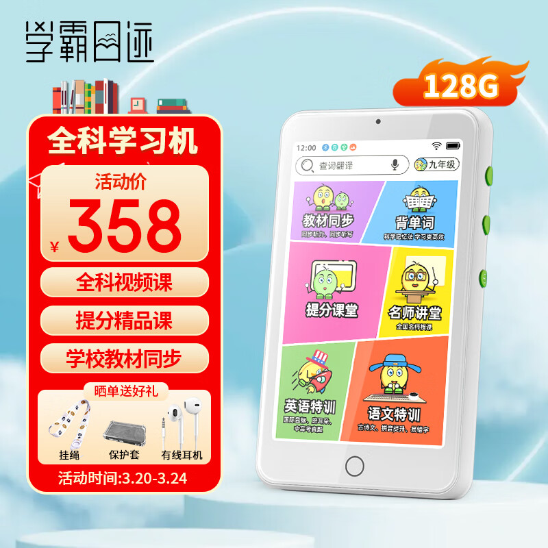 学霸日迹口袋学习机 全科名师讲解视频 英语听力播放器学生专用复读机听力宝机记背单词磨耳朵随身听128G价格:459.00元!