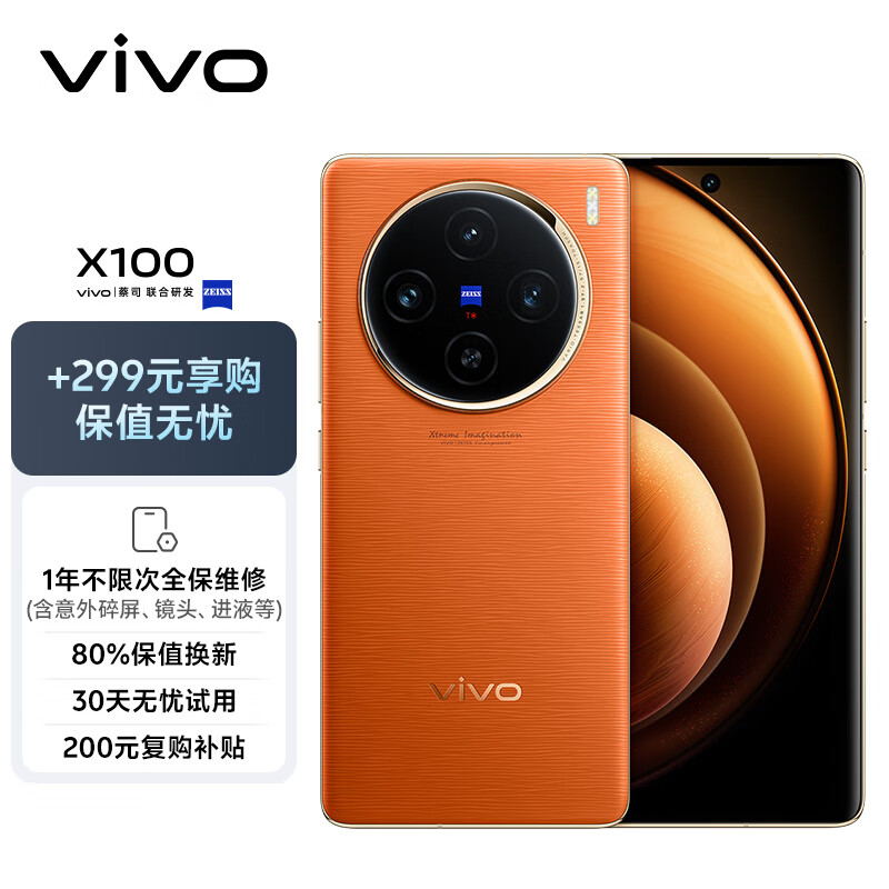 vivo X100 16GB+512GB 落日橙【保值无忧套装】蓝晶×天玑9300 5000mAh蓝海电池 蔡司超级长焦 5G 拍照 手机价格:4898.00元!