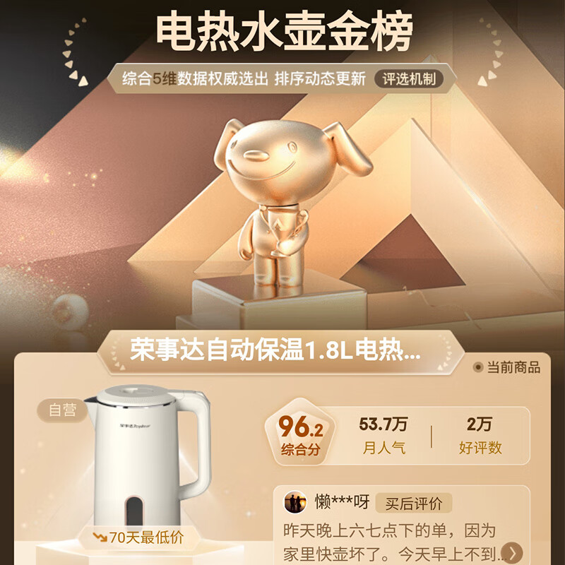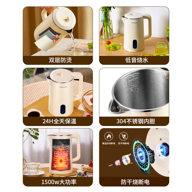 荣事达(Royalstar)电热水壶电水壶烧水壶暖水壶开水壶家用办公室保温304不锈钢大功率1.8升快速烧水电水壶RS-KT18G价格:49.00元!