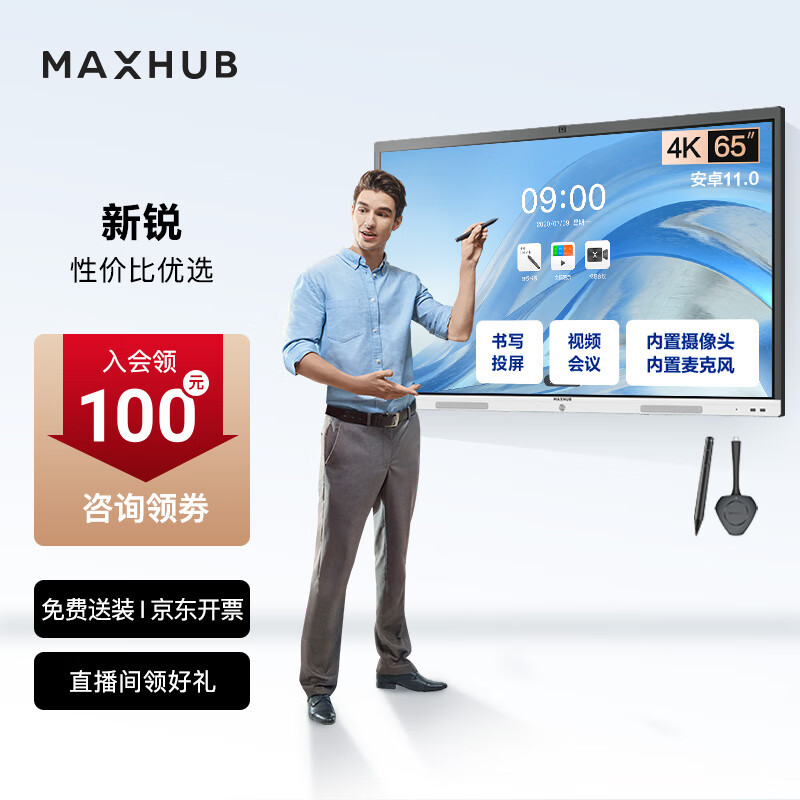 maxhub视频会议平板一体机教学智慧屏摄像头麦克风触摸屏电子白板V6新锐E65+无线传屏+笔价格:6699.00元!