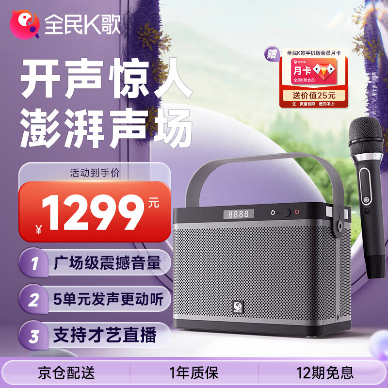 K歌 多功能无线K歌音箱麦克风套装 全能兼容遥控按键方便家用KTV户外娱乐话筒音响一体YH51黑色价格:1499.00元!
