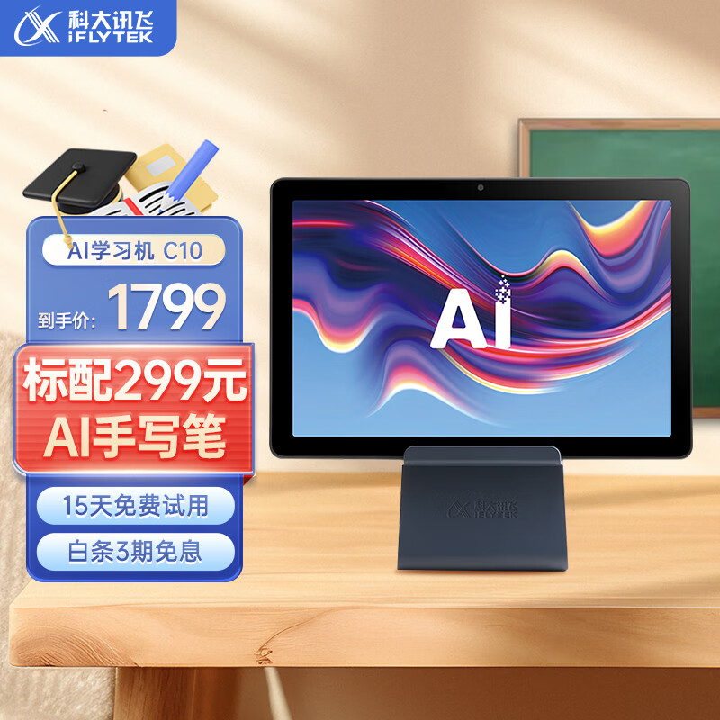 科大讯飞AI学习机C10 10.1英寸 护眼平板电脑 学生平板 英语学习机平板 家教机 小学到高中 4+128GB价格:1799.00元!
