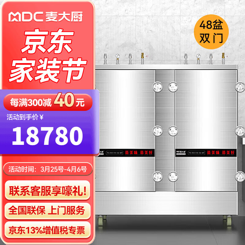 麦大厨 高原蒸箱蒸饭柜商用蒸包炉蒸馒头蒸饭车食堂酒店饭店厨房加厚发泡48盘电热 MDC-DMD-GYJ-48价格:21660.00元!