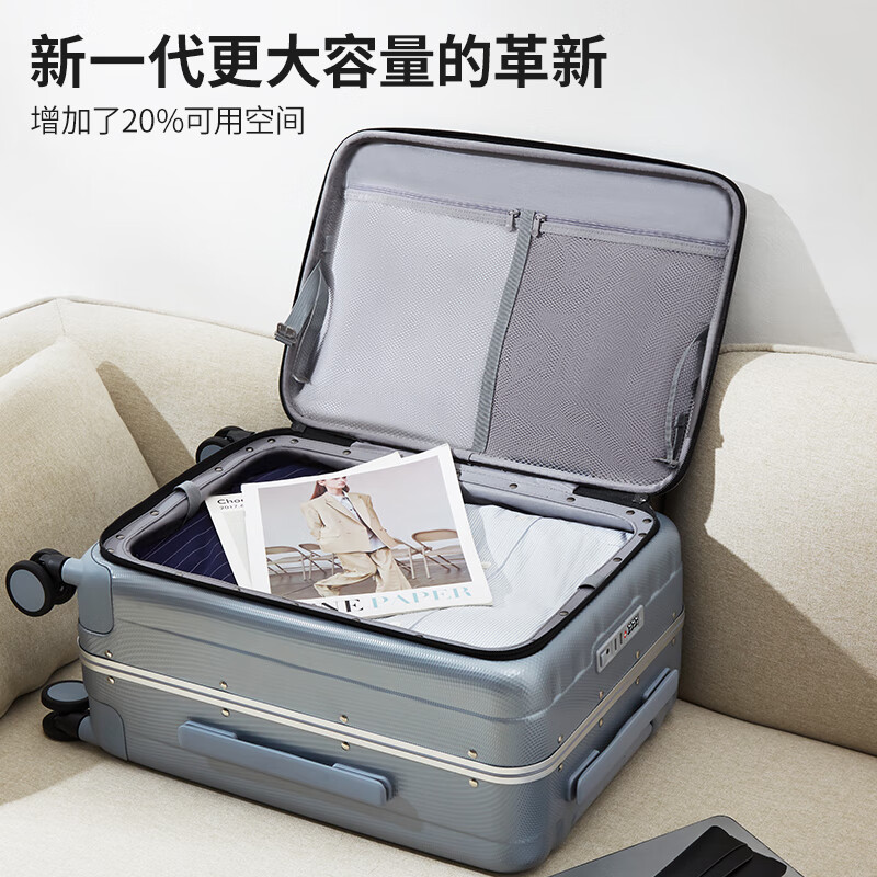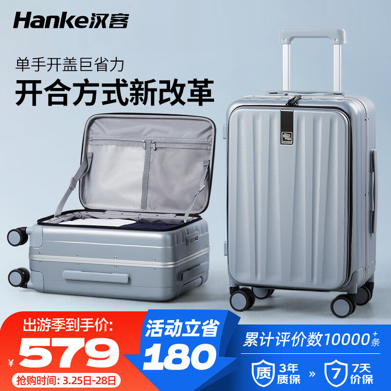 汉客行李箱男拉杆箱女旅行箱88升大容量26英寸环保灰镇店前侧开盖铝框价格:759.00元!