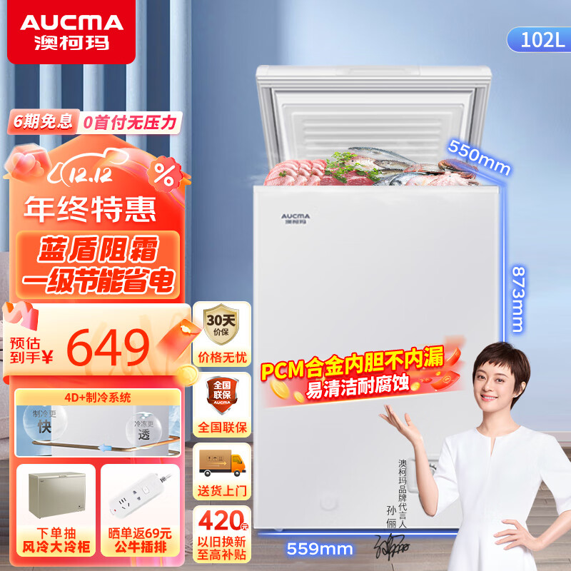 澳柯玛(AUCMA)102升低霜家用商用小冷柜 冷藏冷冻转换两用冰柜 一级能效母婴母乳小冰箱小型租房用小型冰柜 BC/BD-102NE价格:649.00元!