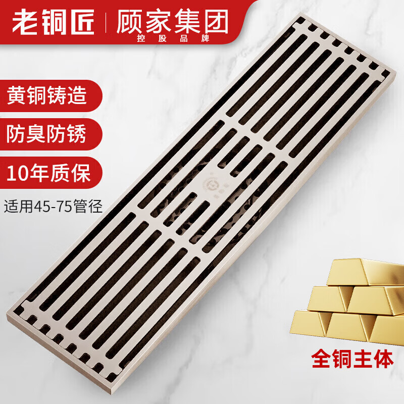 老铜匠顾家集团全铜长条地漏防臭卫生间淋浴房浴室长方形加长大排量条形价格:179.54元!