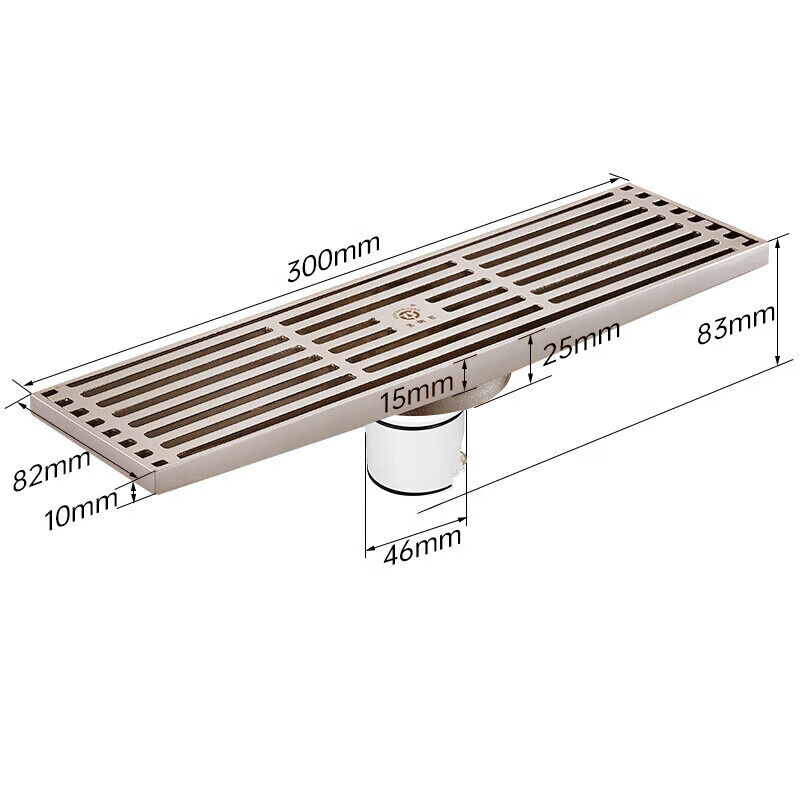 老铜匠镍拉丝色长条地漏大号 (8.2*30cm)配置参数: