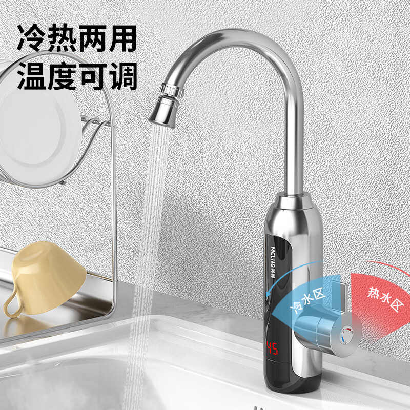 美菱MELNG 电热水龙头下进水速热即热式热水宝快速热电热水器冷热两用家用速热水龙头MF-D349银色款价格:119.00元!