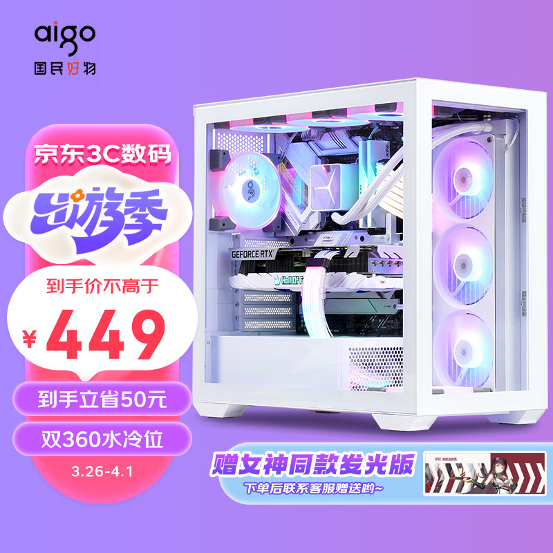 爱国者(aigo)月光宝盒 镜 白色 游戏台式电脑机箱 支持双360水冷/E-ATX主板/Type-c/白色海景房/4090显卡价格:449.00元!