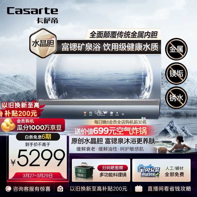 卡萨帝(Casarte)80升银河家用储水式电热水器原创水晶胆卫生间富锶汤泉变频速热一级能效 CES80H-PROS3CEK02U1价格:5578.00元!