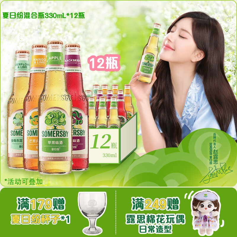 夏日纷Somersby混合口味果味酒330ml*12瓶(口味随机)整箱装价格:105.00元!