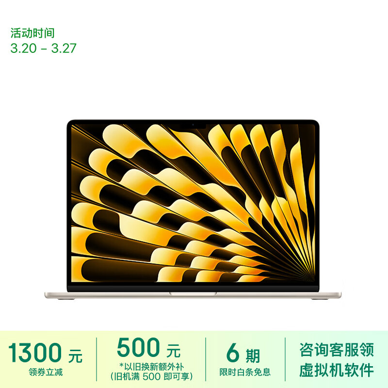 Apple/苹果2023款MacBookAir 15英寸 M2(8+10核)16G 256G星光色轻薄笔记本电脑Z18R0002J【定制】价格:11999.00元!