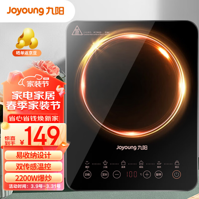 九阳(Joyoung)电磁炉 2200W大功率可收纳电源一键猛火家用电磁炉火锅炉C21S-C152单机版价格:149.00元!