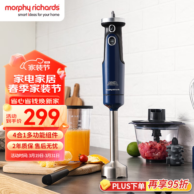 摩飞电器(Morphyrichards)绞肉机 家用多功能料理棒 婴儿辅食机 分体可拆 多配件搭配 佐料机 MR6006 蓝色价格:299.00元!