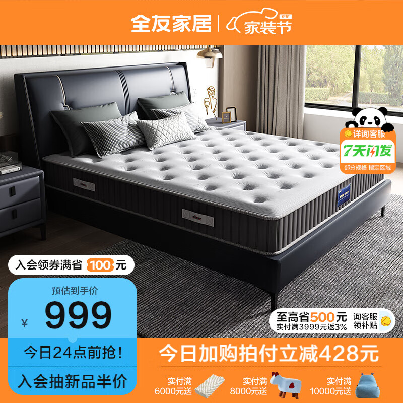 全友家居 乳胶床垫 软硬两用 五区独袋弹簧床垫105169价格:1427.14元!
