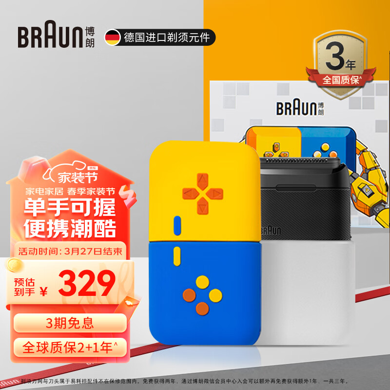 博朗(BRAUN)游戏主题礼盒款电动剃须刀往复式刮胡刀保护套生日礼物男送老公送男友男士礼物差旅便携价格:329.00元!