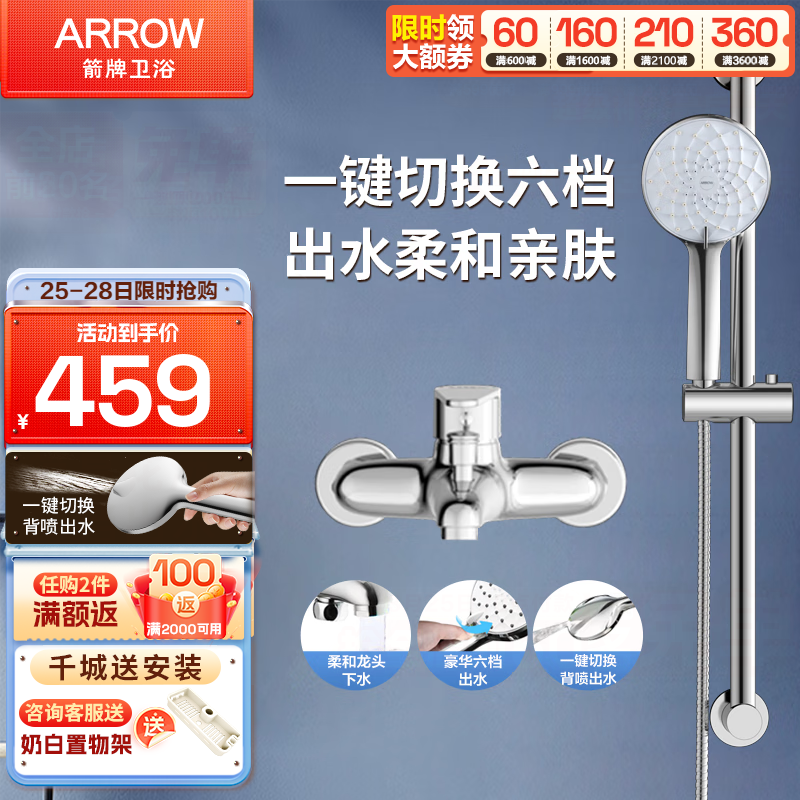 箭牌精铜龙头浴缸淋浴花洒套装花洒喷头混水阀简易花洒全套小户型花洒 简易带杆花洒套装AE3218价格:573.75元!