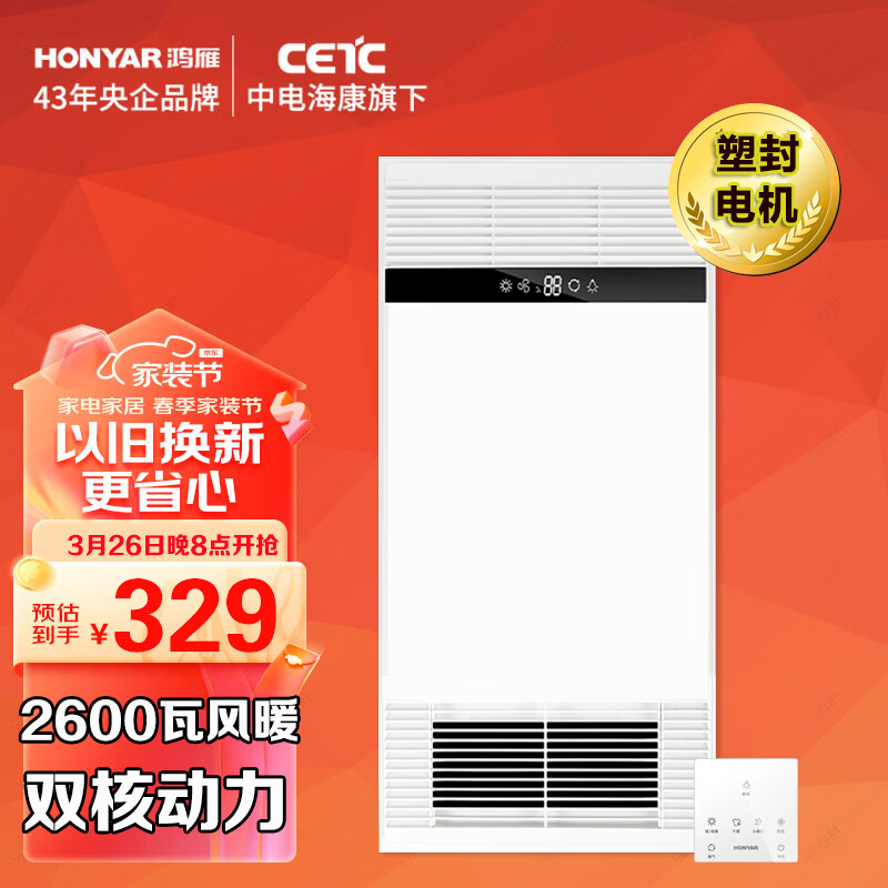 鸿雁风暖浴霸排气扇照明一体集成吊顶灯卫生间浴室暖风机 QF12707Z价格:499.00元!