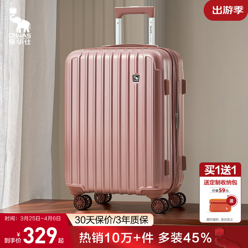爱华仕行李箱可登机20英寸女小型拉杆箱男旅行箱可扩展密码箱皮箱玫瑰金价格:329.00元!