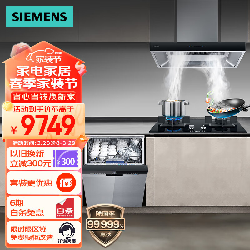 西门子烟灶洗套装 14套大容量嵌入式家用洗碗机 吸油烟机灶具套装(天然气) SJ43H+951W+F23MP价格:9749.00元!