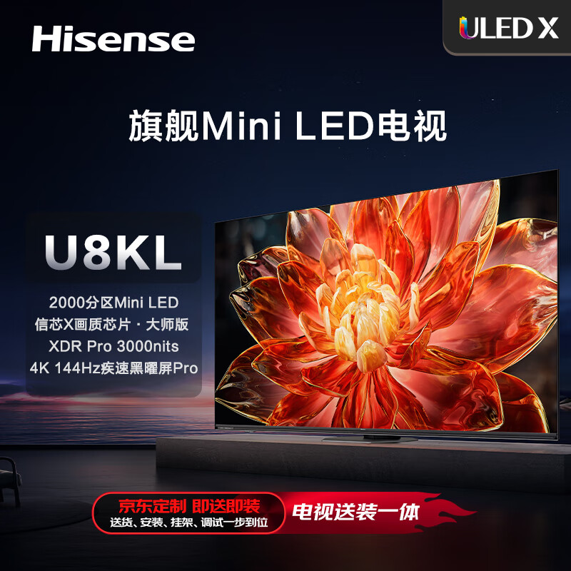 海信电视75U8KL 75英寸【包安装版】ULED X 旗舰Mini LED 3000nits 黑曜屏 PRO 液晶智能电视机价格:12698.00元!