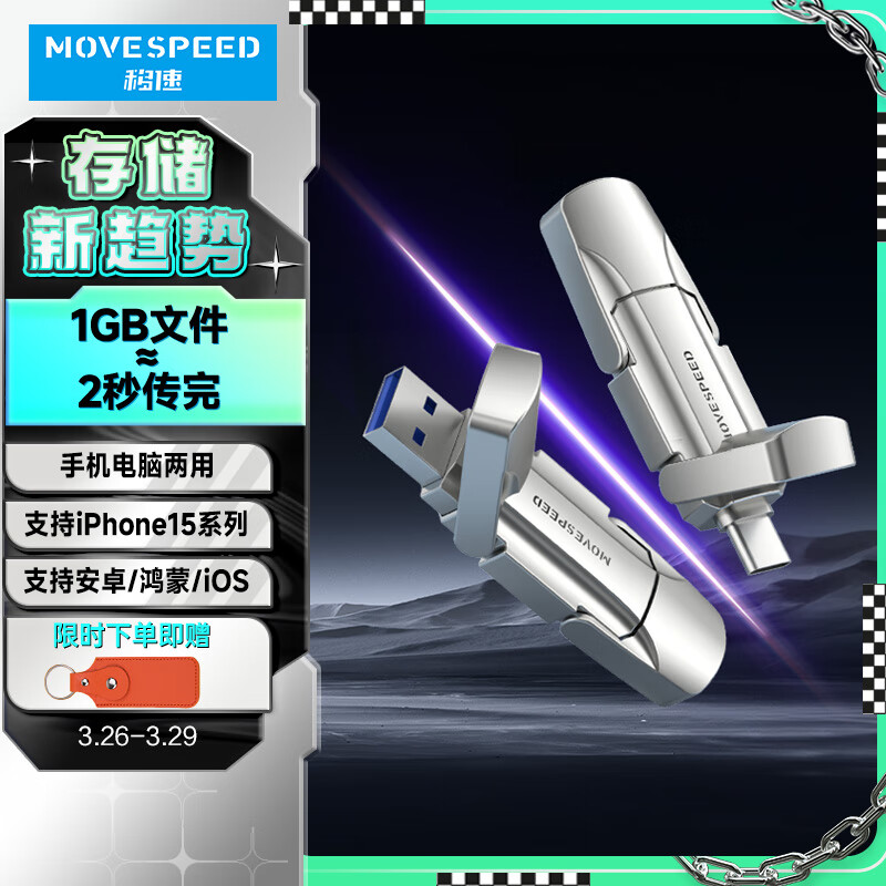 移速(MOVE SPEED)512GB USB3.2/Type-c双接口 固态U盘 逸V系列 读速550M/s 苹果15系列 安卓&鸿蒙 车载优盘价格:375.00元!