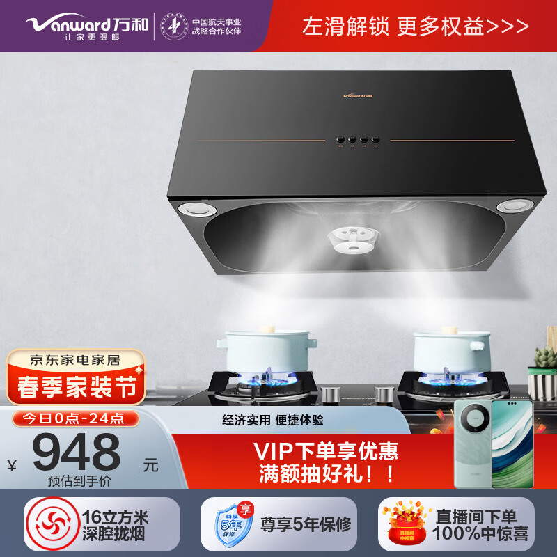 万和(Vanward)中式经典抽油烟机燃气灶具套装 吸油烟机家用烟灶套装 油烟机 H05GS+B3L20(液化气)价格:948.00元!