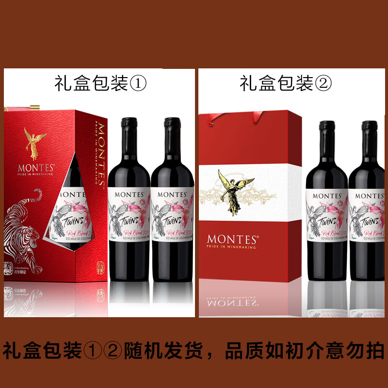 MONTES蒙特斯双宝干红葡萄酒 智利原瓶进口红酒送礼佳选750ml双支礼盒装价格:378.00元!