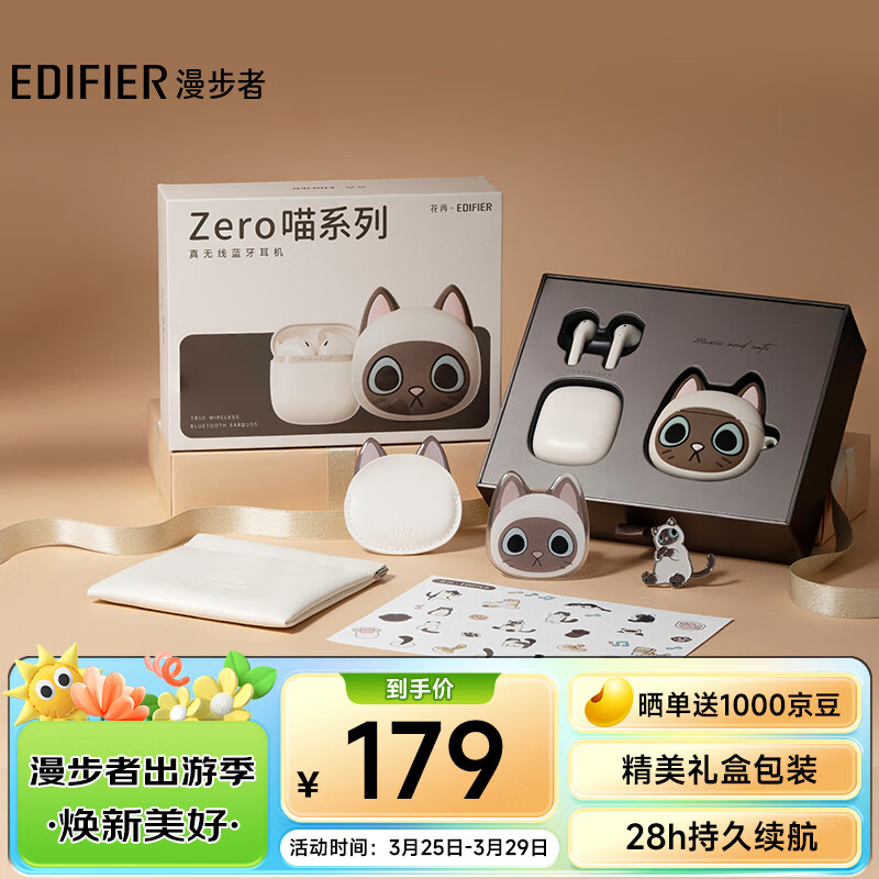 漫步者(EDIFIER)Zero 喵 喵系列限定主题礼盒 真无线蓝牙耳机 半入耳式耳机 无线耳机 节日生日礼物礼盒 暹罗喵价格:179.00元!