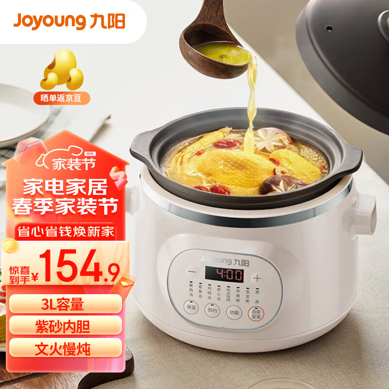 九阳 (Joyoung)电炖锅电炖盅煲汤锅炖汤锅 煮粥锅 紫砂内胆 3升 GD517价格:154.90元!
