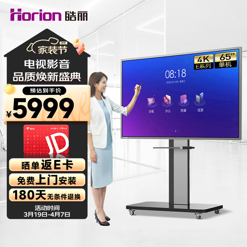 皓丽智能会议平板电视一体机65英寸触屏无线投影投屏4K高清会议室显示商用移动教学大屏移动单机套装价格:7149.00元!