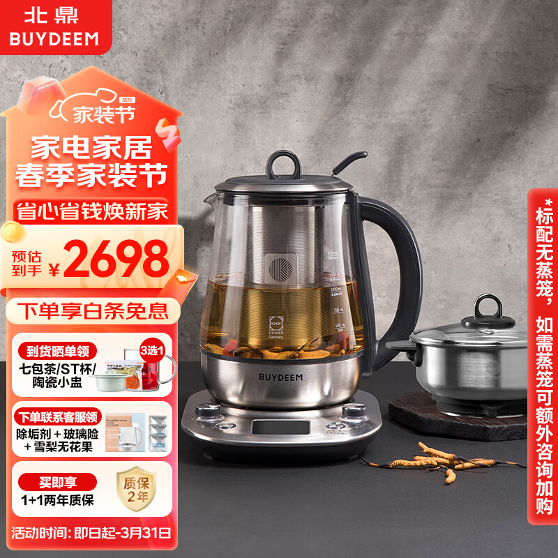 北鼎(Buydeem)养生壶中药壶多功能养生壶高端预约煮茶器商务全不锈钢进口玻璃智能养身燕窝壶K187价格:2698.00元!