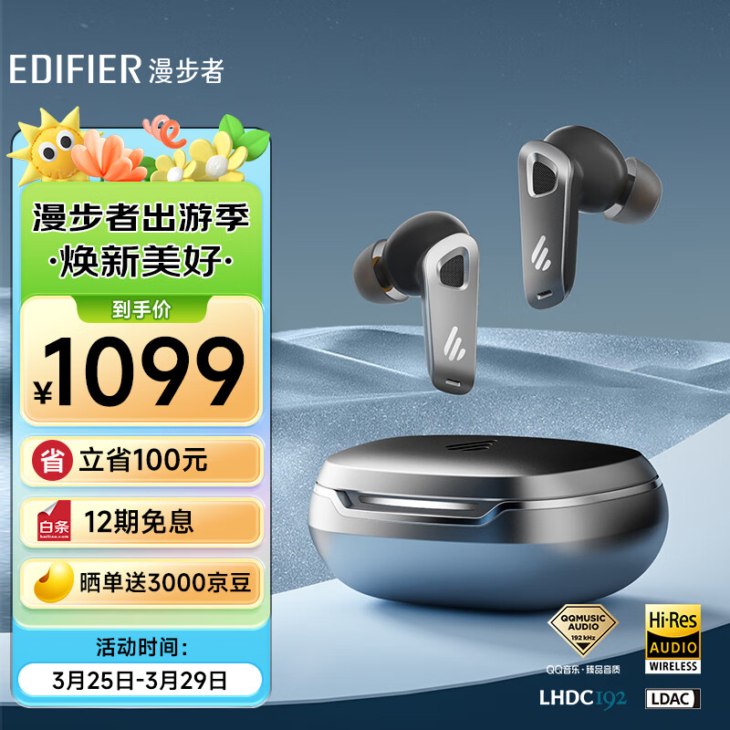 漫步者(EDIFIER)NeoBuds Pro2 超广域降噪蓝牙耳机 降噪运动耳机 适用苹果小米华为 银河灰价格:1099.00元!
