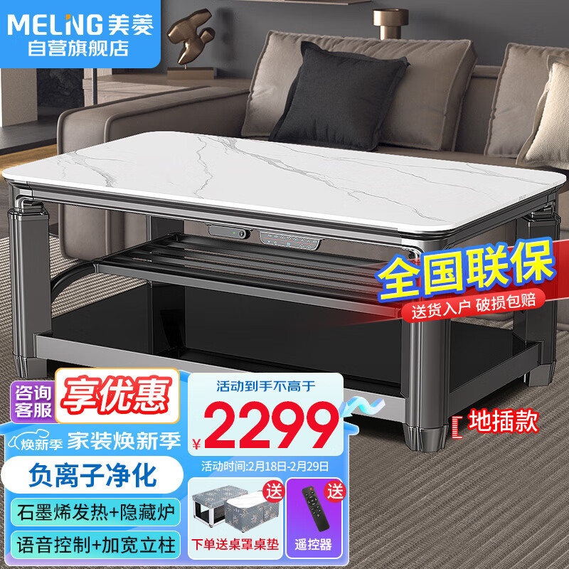 美菱电暖桌1.38米石墨烯发热长方形取暖桌多功能升降烤火茶几语音电暖炉家用餐桌烤火桌MDN-128GD1E价格:2699.00元!