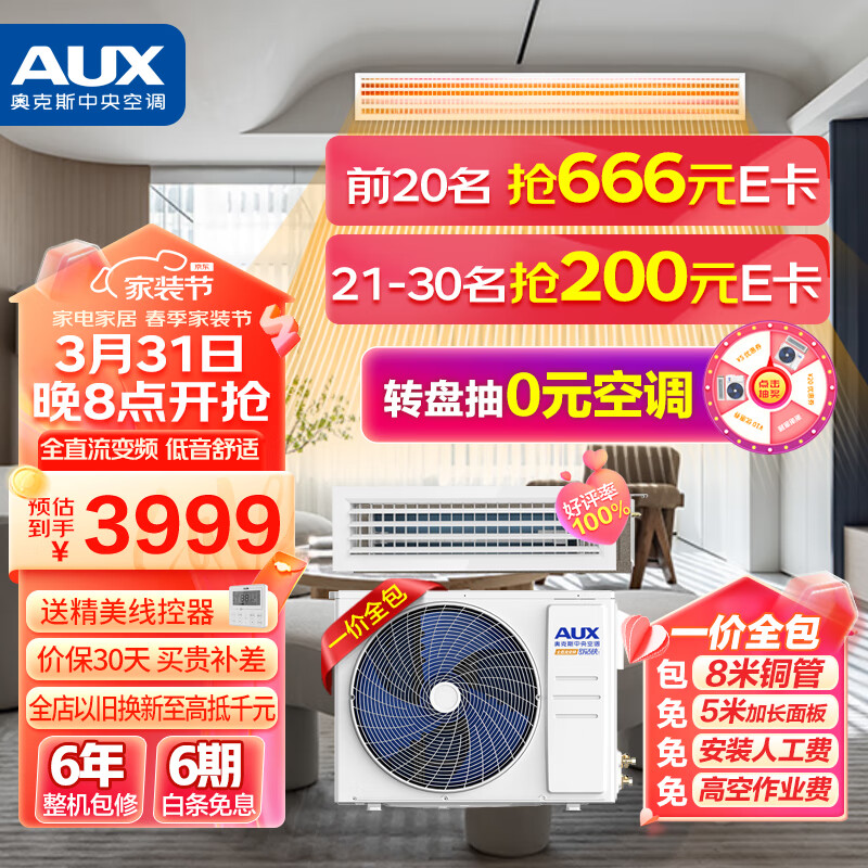 奥克斯(AUX)中央空调风管机一拖一1.5匹 全直流变频 卡机卧室嵌入式空调 舒适侠 GR-36DW/BPR3DQ-SSX(B3)价格:3999.00元!