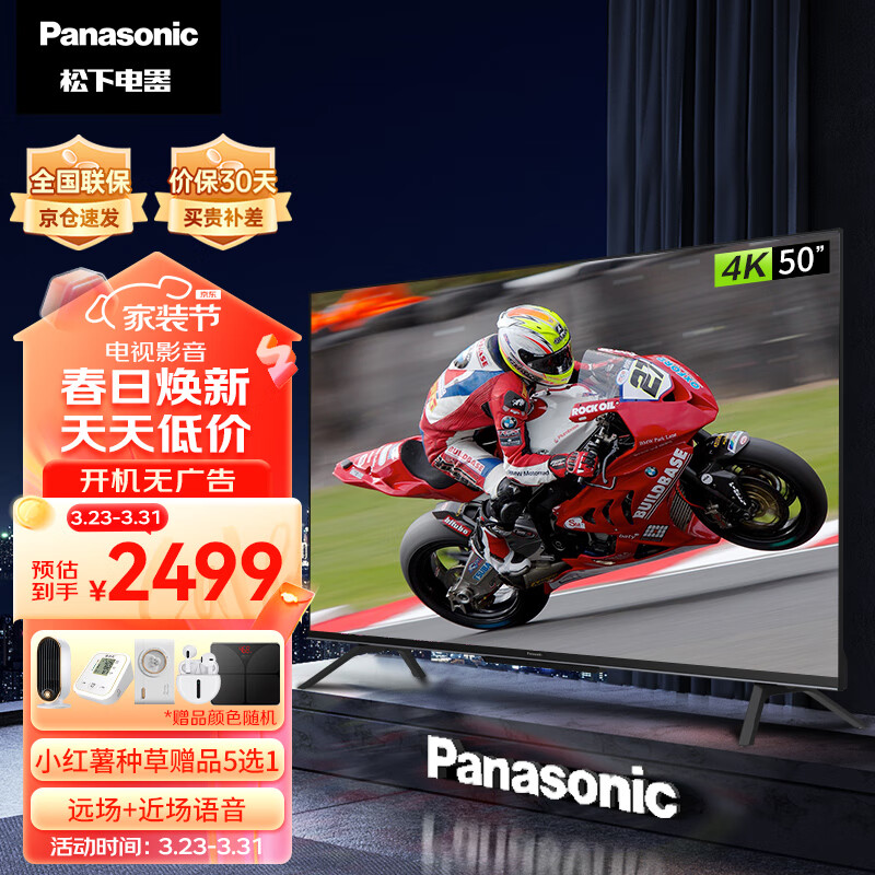 松下(Panasonic)电视LX580 50英寸 丽可彩4K 屏MEMC AI语音 开机无广告智能电视机 TH-50LX580C价格:2498.00元!