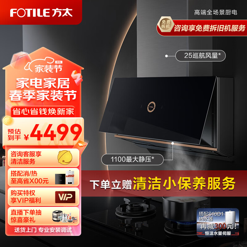 方太(FOTILE) 抽油烟机 欧式侧吸一体抽排油烟机 25大风量 屏 挥手智控 集成烹饪中心 A-MAX油烟机P1A.i价格:4499.00元!