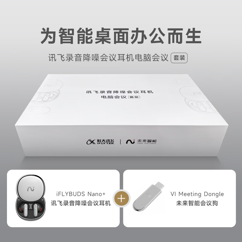 科大讯飞录音降噪会议耳机Nano+ 无线蓝牙耳机会议狗套装 主动降噪 同传听译 录音转文字 苹果华为通用价格:1419.00元!