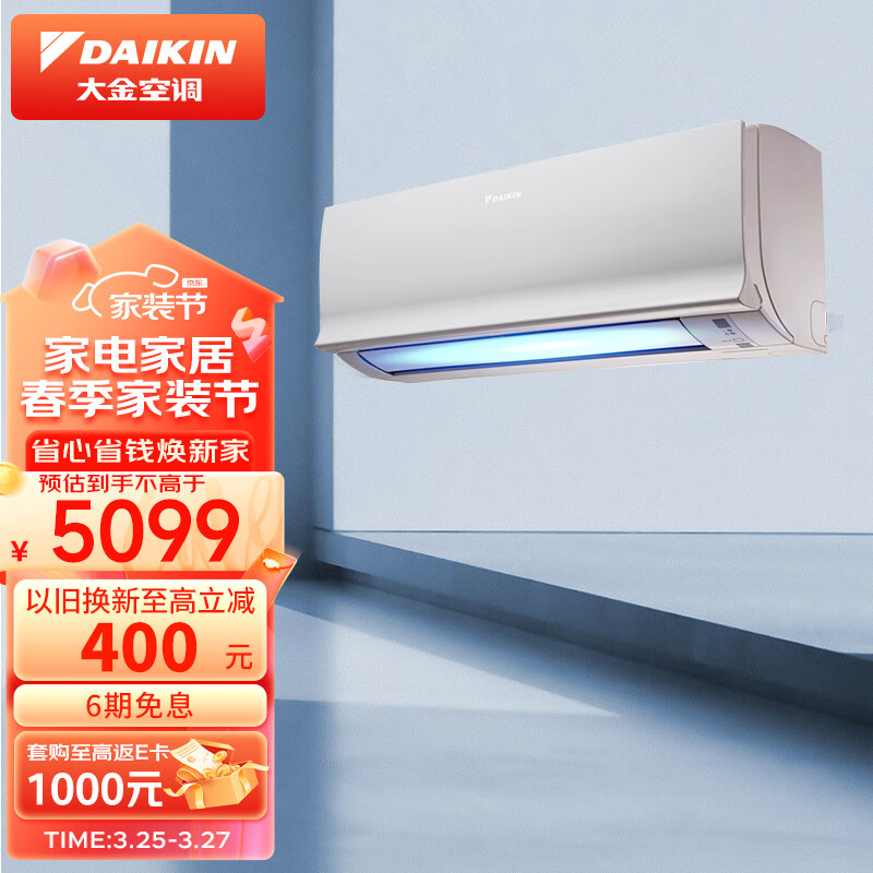 大金空调 10-17㎡适用 新二级能效 大1匹 变频 冷暖 家用 壁挂式 以旧换新 ATXS226WC-W价格:5099.00元!