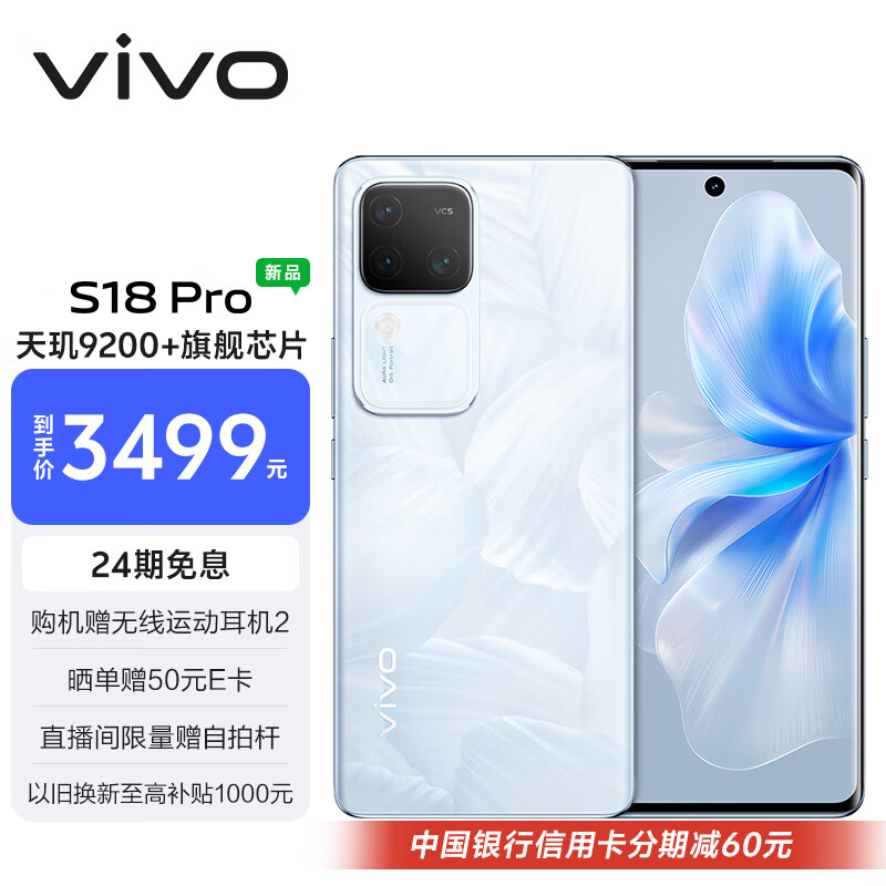 vivo S18 Pro 16GB+256GB 花似锦 天玑9200+旗舰芯片 后置影棚级柔光环 5000mAh超薄蓝海电池 拍照手机价格:3499.00元!