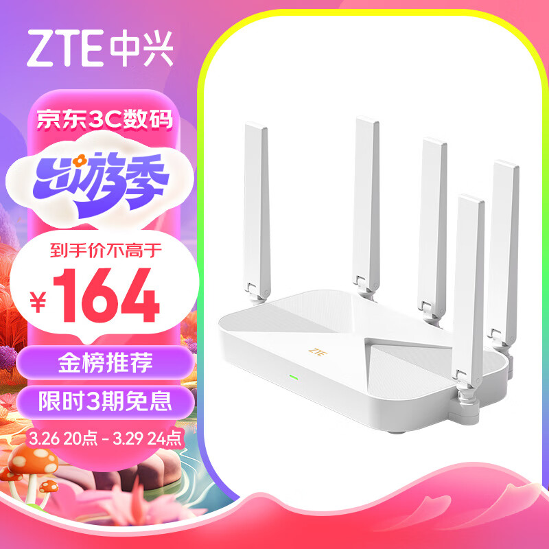 中兴(ZTE)【巡天版】AX3000满血WIFI6千兆无线路由器 自研双核主芯片 5G双频游戏路由 Mesh 3000M无线速率价格:289.00元!