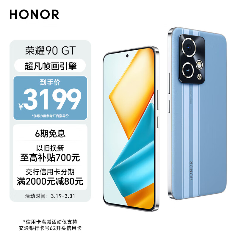 荣耀90 GT 第二代骁龙8旗舰芯 超凡帧画引擎 荣耀绿洲护眼屏 5000mAh轻薄长续航 OIS 16+512 GT蓝 5G直屏价格:2999.00元!